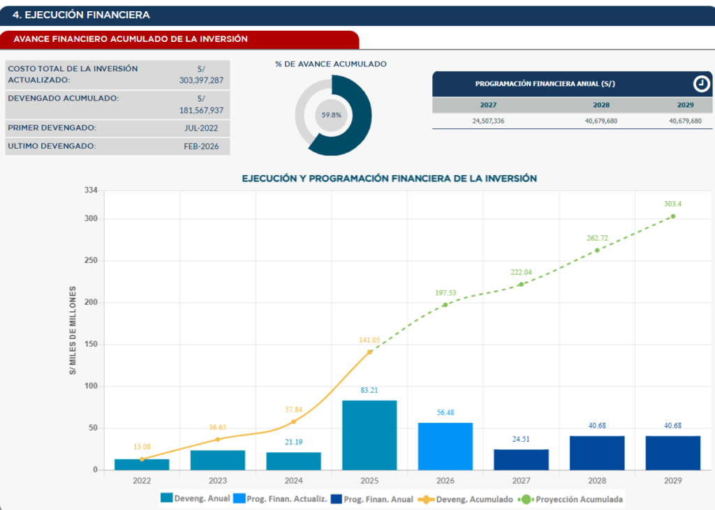 Otra información es que el avance de la ejecución de la inversión es de 56.4% y el avance de la ejecución física de la inversión llega a 30.1%.