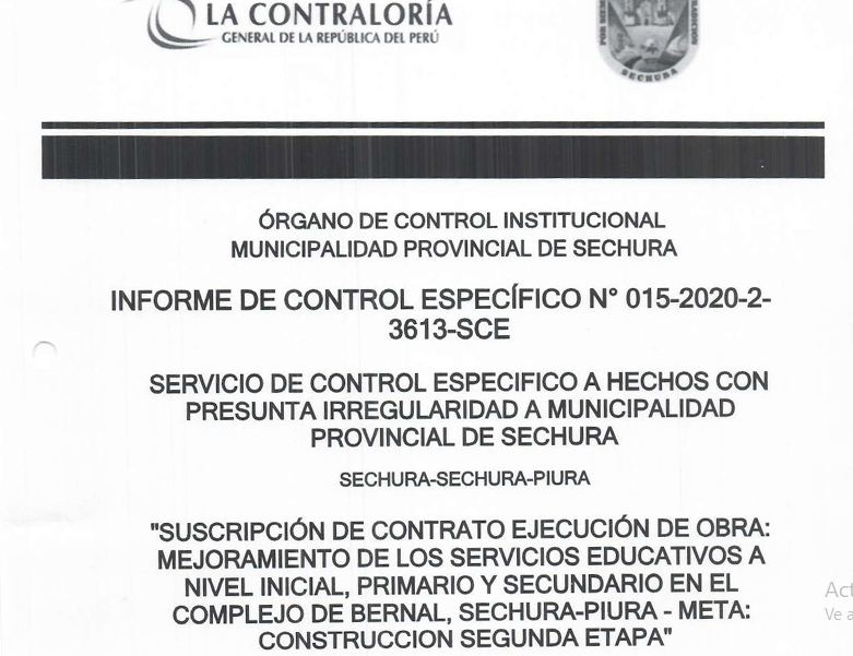 El ciudadano en mención, al parecer se ha sentido aludido cuando se le menciona en el Informe de Control Específico N° 015-2020-2-3613-SCE que recomienda el inicio de acciones administrativas y legales contra los funcionarios y/o servidores de la municipalidad provincial de Sechura que resultaran responsables de infracciones administrativas.