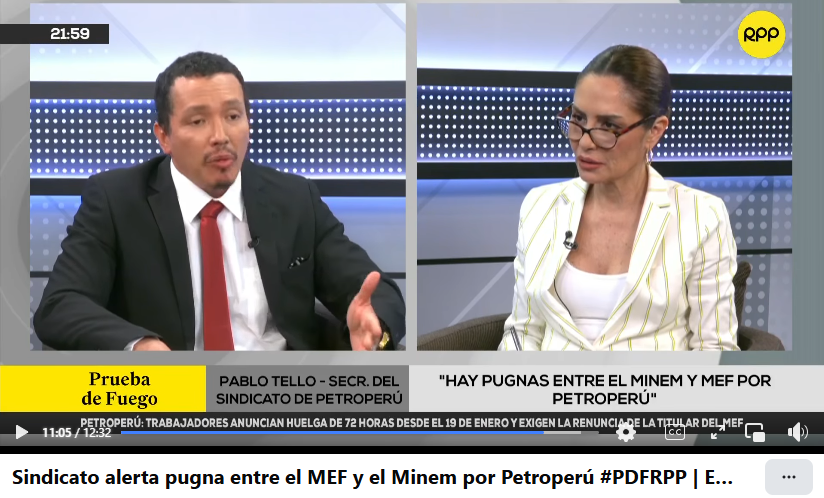 PABLO TELLO WILLARD, secretario de prensa y vocero del sindicato de trabajadores administrativos de Petróleos del Perú – Petroperú S.A. – STAPP ha lamentado la pugna interna por el poder entre los ministerios de energía y minas (MINEM) y economía y finanzas (MEF) principales accionistas de Petroperú con 40% y 60%, respectivamente.